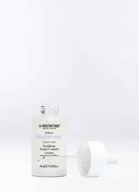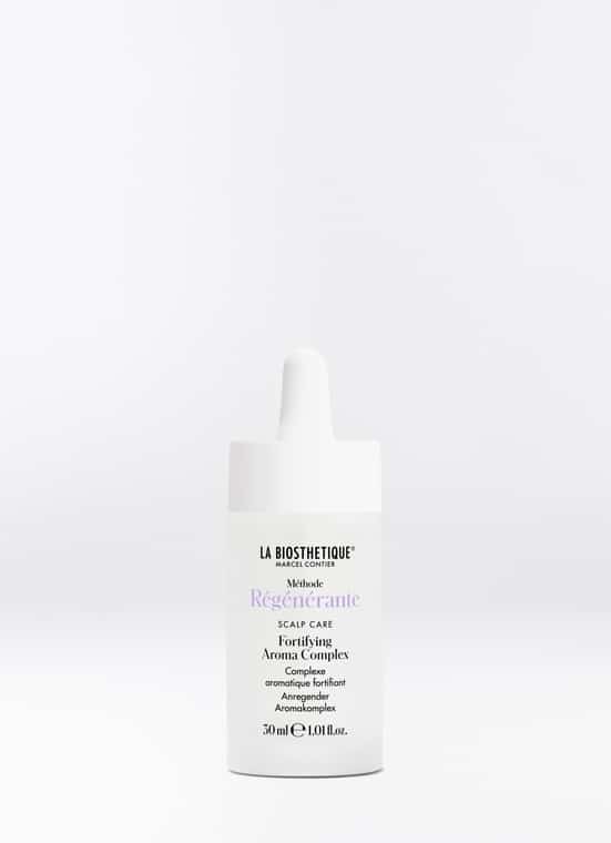 Da biste bili najbolji, potrebna vam je zdrava ravnoteža. To se također odnosi i na vlasište kojemu je potrebna uravnotežena okolina za pun, snažan rast kose. S eteričnim uljima moćnih biljaka, Fortifying Aroma Complex harmonizira vlasište i istodobno potiče njegove prirodne funkcije. Muškatna kadulja, majčina dušica i ruža geranija djeluju antimikrobno i balansirajuće. Lavanda pojačava opuštajući učinak, a ružmarin potiče cirkulaciju i metabolizam vlasišta. Kao rezultat toga, vlasište se revitalizira, opskrba korijena kose energijom značajno se poboljšava, a poremećaji rasta i gubitak kose aktivno se suzbijaju. Aromatični miris podržava harmonizirajući i stimulirajući učinak te korištenje Fortifying Aroma Complexa čini holističkim iskustvom za tijelo i um.
